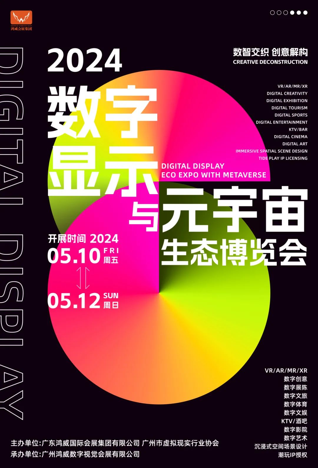 数字显示与元宇宙生态博览会,由广东鸿威国际会展集团有限公司、广州市虚拟现实行业协会主办。每年定期于5月10-12日在广交会展馆举办。是横跨元宇宙、数字展陈/显示、数字文旅、数字艺术、数字体育、场景设计、动漫游戏、潮玩等产业上中下游的专业展贸平台!