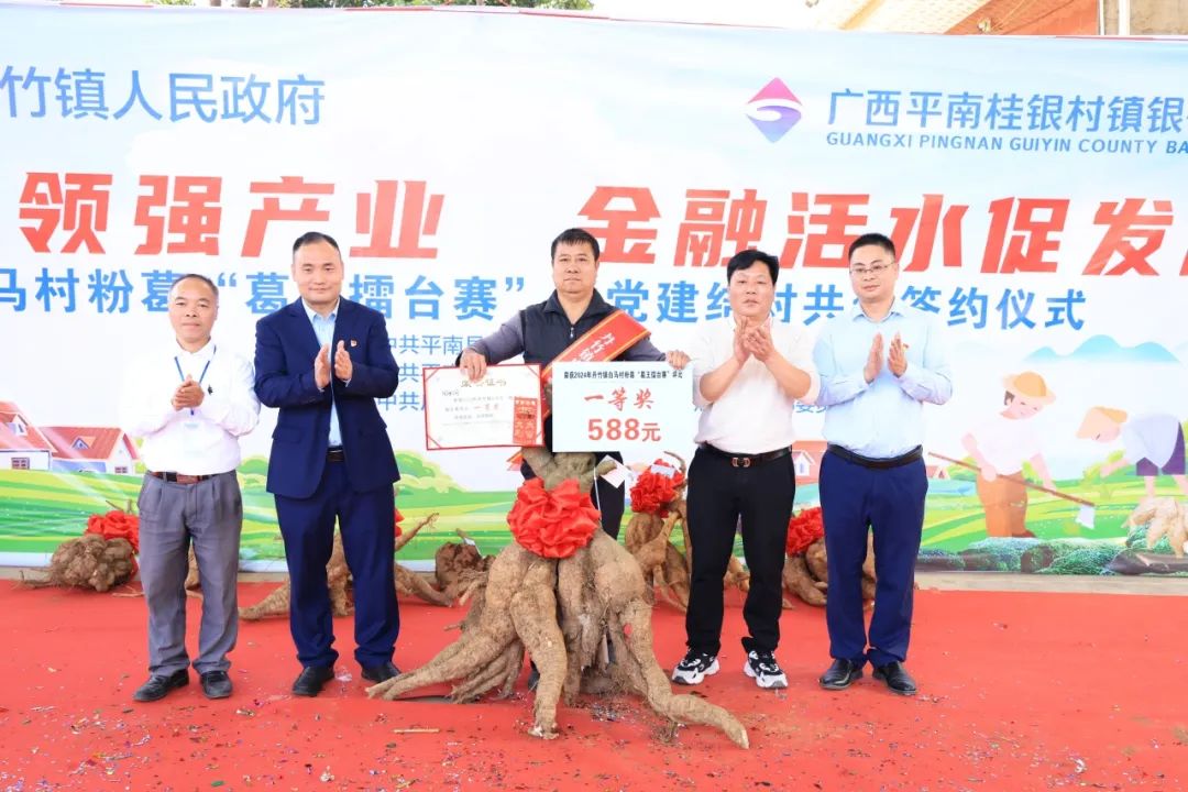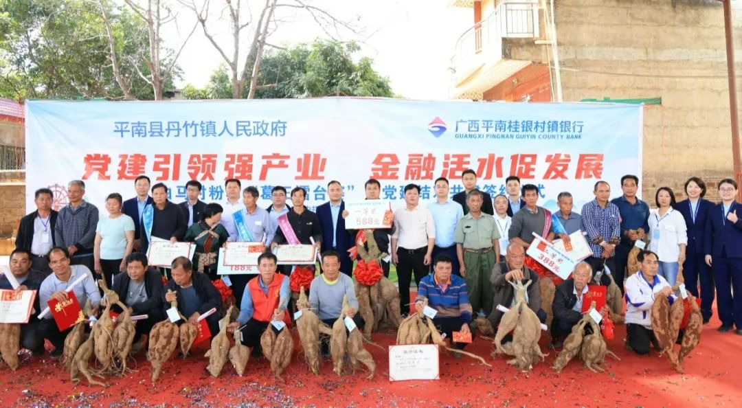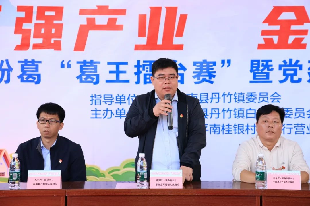 易文旺对平南桂银长期以来为丹竹镇经济社会发展作出的贡献表示感谢,他指出,丹竹镇自实施乡村振兴战略以来,按照一村一品思路,积极谋划农业产业布局,精心培育新型农业经营主体,致力于发展特色农业产业,举办此次“粉葛王”擂台赛,旨在为农户搭建推介平台,进一步拓宽销售路子,擦亮白马葛薯王名片。下一步,丹竹镇将融合政银力量,积极挖掘葛薯潜在价值,实现深加工发展,延长葛薯产业链,引导葛薯产业升级,进一步激发乡村振兴新动能。
