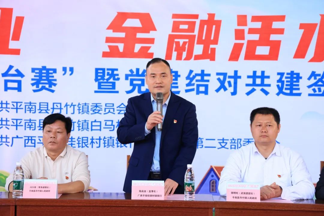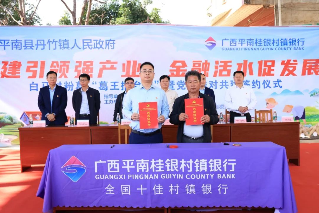 1月17日,在丹竹镇党委的支持下,平南桂银营业网点第二党支部联合丹竹镇白马村党委成功举办白马村2024年“粉葛王”擂台赛暨党建结对共建签约仪式。丹竹镇常务副镇长冯令宵,丹竹镇宣传、统战委员易文旺,丹竹镇副镇长孔令巧,丹竹镇武装部部长郭明旺,平南桂银监事长陆高业,平南桂银行政总监邱宏波,平南桂银营业网点第二党支部书记苏焕军,丹竹镇白马村党委副书记冯海波等相关领导出席活动。