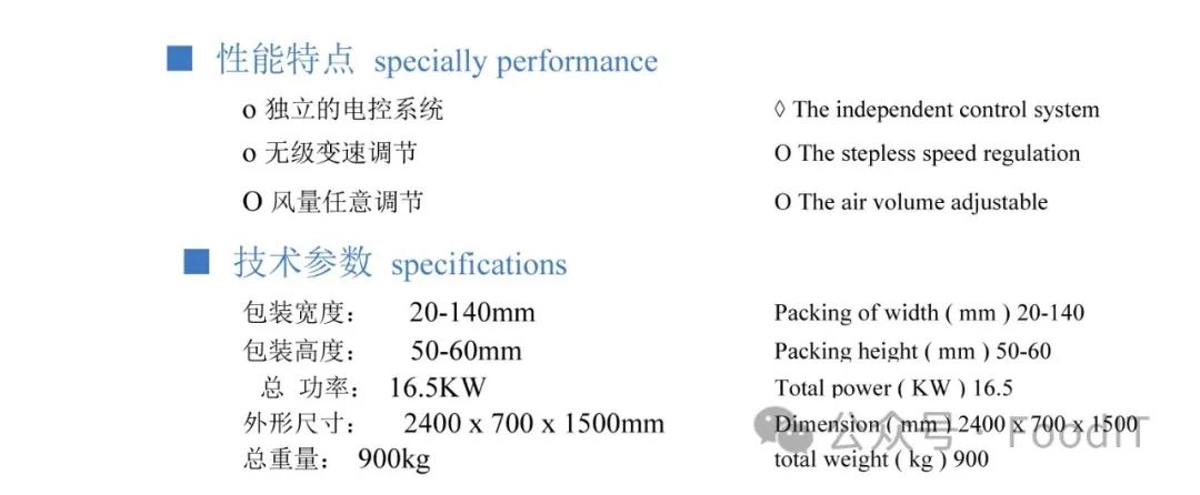 6、 Y紊列彙用机诚式羸转式切刀,包装速度快,可在机 器运行中随意调整切刀位置;在实际操作中实际速度最 快可达95包每分钟,依据客人反应结果单个人操作速 度可达72包/分钟。该设备速度为55—100包/分钟可调节。