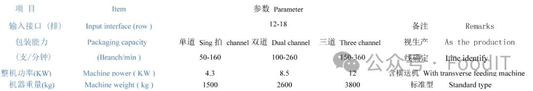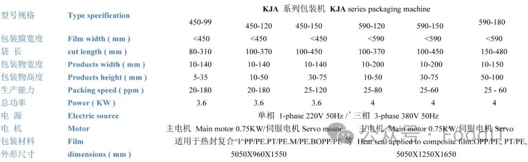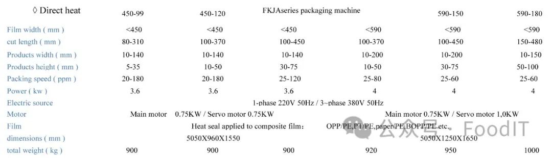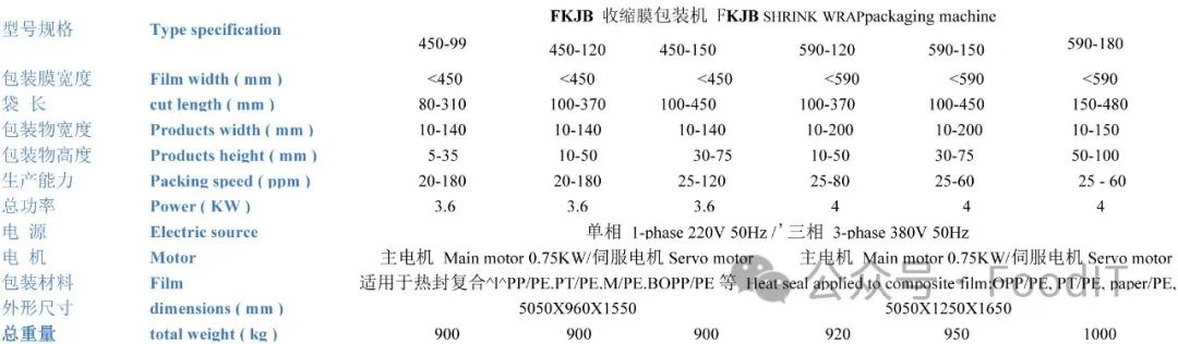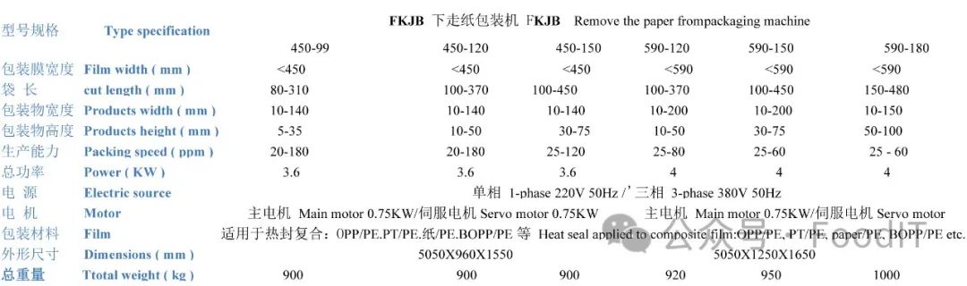 型号规格 Type specification FKJA切片包装机系列 FKJA Slice packaging machine series