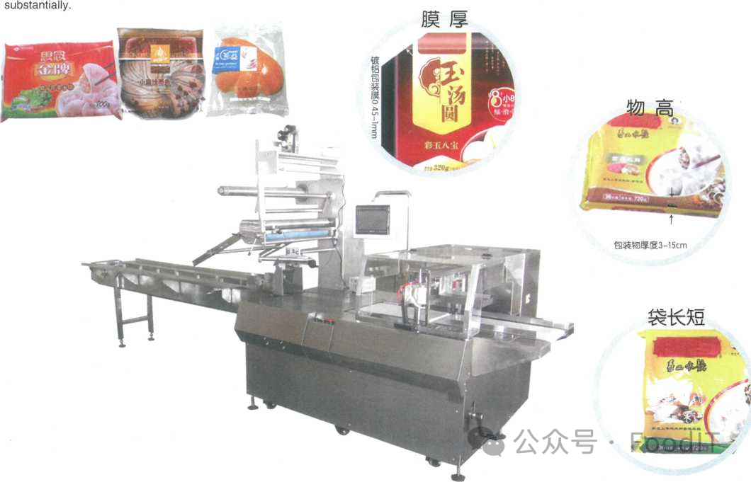 速冻水饺、汤圆、丸子、馄饨、南瓜饼、春饼、面包、吐司等大型系列包装物的包装。