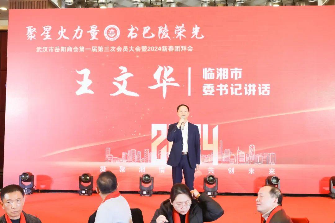 1月13日,武汉市岳阳商会第一届第三次会员大会暨2024新春团拜会在武汉市隆重举行。岳阳市统战部常务副部长甘勇,工商联主席陈立新,临湘市委书记王文华,华容县人大副主任罗绍洪,武汉市工商联二级巡视员刘珍秀,武汉市武昌区工商联副主席王琦,兄弟商会会长、秘书长,异地岳阳商会代表,商会全体会员及在汉乡贤等近300人欢聚一堂,共叙乡情乡谊。商会会长单位副总裁李伟受邀参加活动。