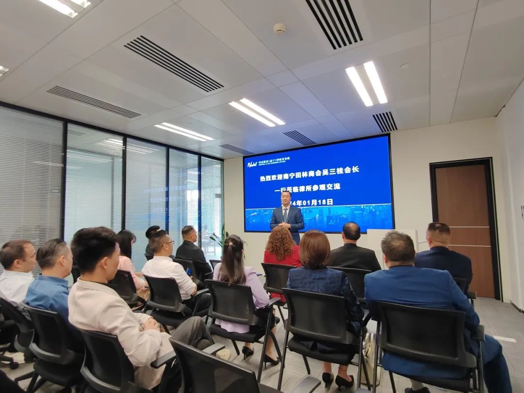 2024年1月18日下午,南宁田林商会会长吴三桂、书记李林茂、常务副会长黄浩、王关志、监事长王浩霖等商会领导班子及商会理事成员一行莅临本所走访交流。本次走访旨在了解商会优秀会员单位情况,联合发挥所长,给会员单位提供多样化的便捷服务。