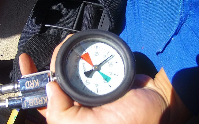 2022年11月8日,在江西省南昌市昌龙石油液化气有限公司,督导组现场考核工作人员演示如何使用空气呼吸器时,一台空气呼吸器气瓶的压力值过低,没有达到压力基准线。