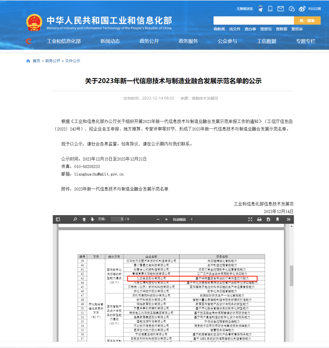 近日,工信部发布了《关于公布2023年新一代信息技术与制造业融合发展示范名单的公示》,其中在两化融合管理体系贯标方向,九三食品公司“基于非转基因食用油订单快速交付能力”项目入选全国示范名单。据了解, 在黑龙江省入选7家企业中,九三食品公司是唯一一家食品制造型企业。近年来,九三食品公司乘“云”而上、借“数”转型,加快推动数字技术与实体工作深度融合,深入推进新型工业化、构建现代化产业体系,为九三“数智化”创新发展提供坚实支撑。在整体数字化建议方案规划下,九三食品公司开启了新一代信息技术全面赋能各业务条线。财务、采购、销售、电商、仓储、物流等多方面业务场景已实现应用,所有数据均已进行整合,系统数据全部打通。目前,各业务条线运转便捷,数据清晰,为管理层把控业务方向提供有力的数据支撑。 未来,九三食品公司将不断加快“数智化”转型发展步伐,建立更加完善、更加便捷的数字化信息系统,为企业的高质量发展贡献力量。据了解,此次遴选以新一代信息技术与制造业融合发展为主题,旨在选出一批标杆示范项目,探索形成可复制、可推广的新业态和新模式,为推进新型工业化发展明确路径和方向。