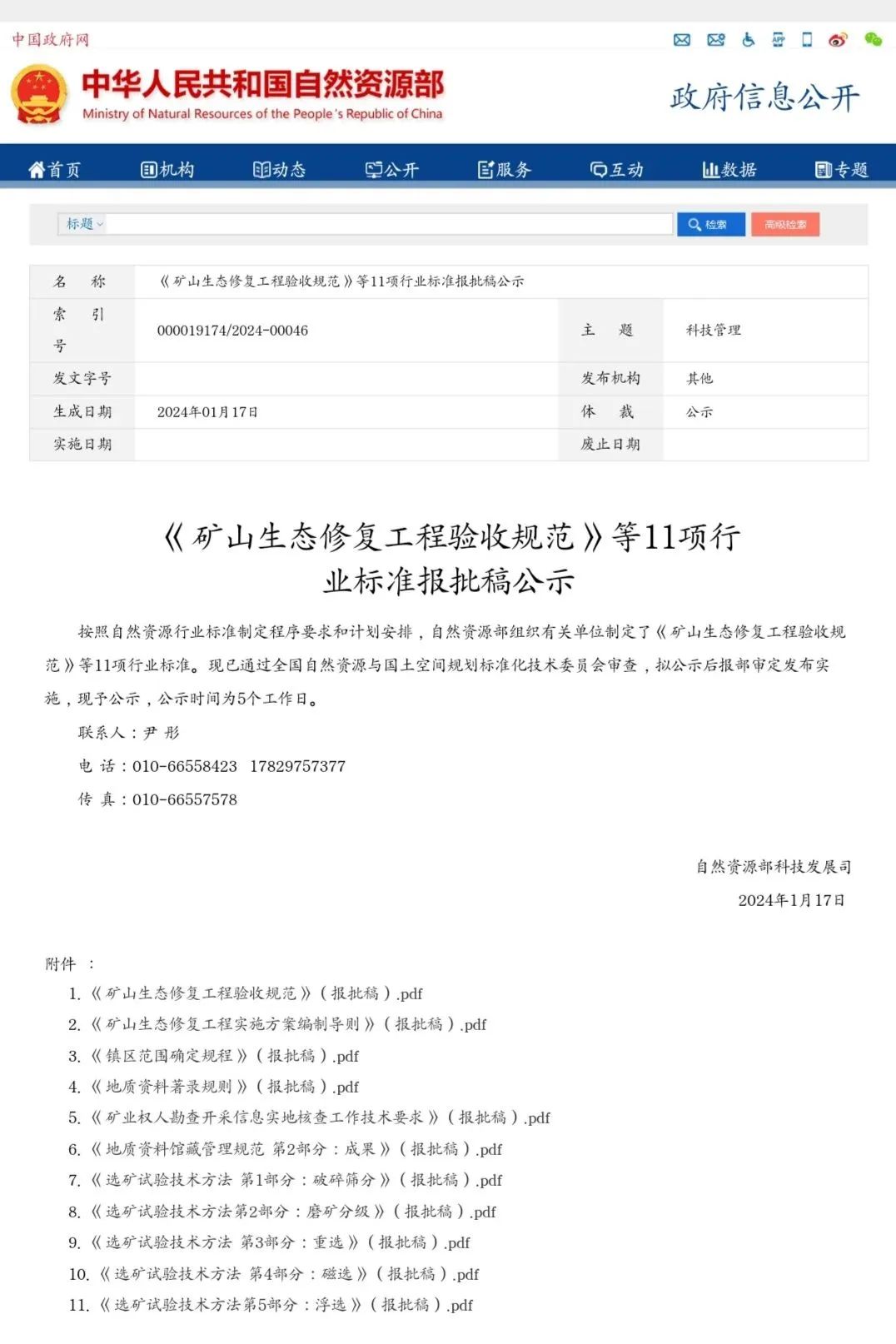 《矿山生态修复工程验收规范》等11项行业标准报批稿公示