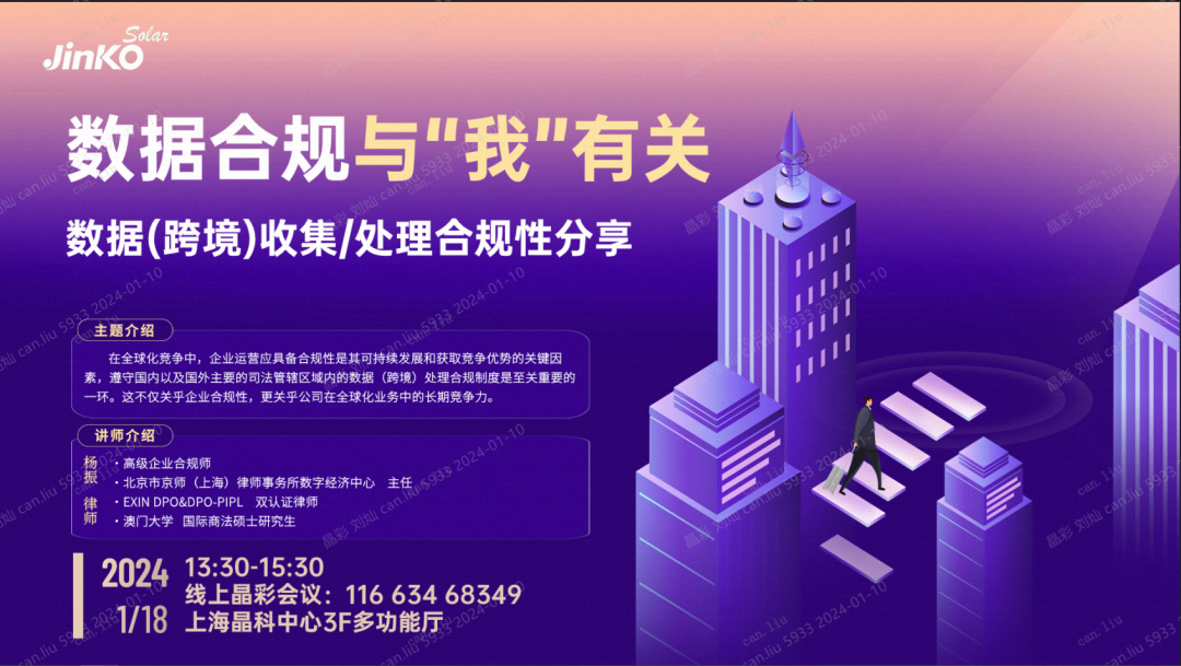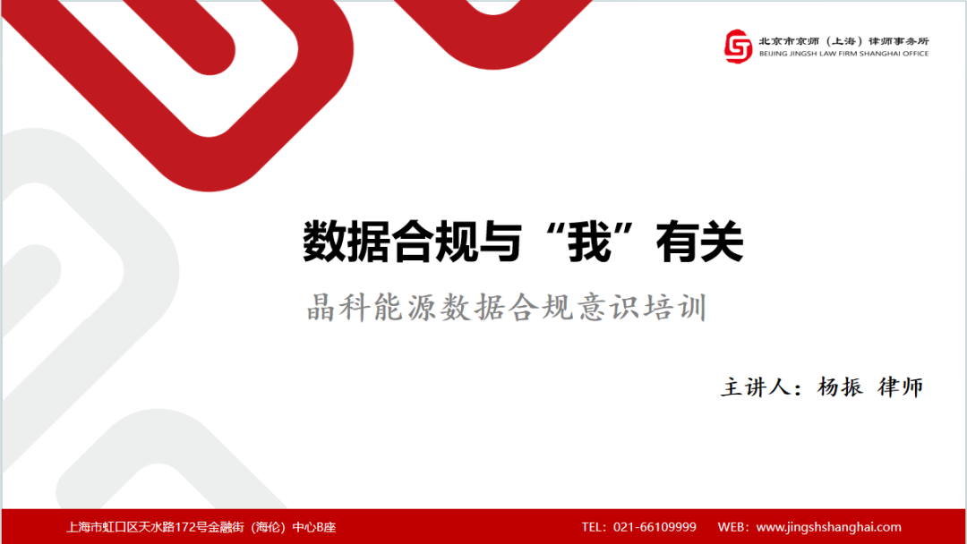 昨天(1月18日)下午,京师上海律所数字经济中心主任杨振律师受邀为光伏行业龙头企业晶科能源开展数据合规培训。
