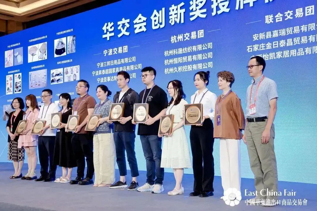 在开幕式上还举行了华交会创新奖发布仪式,分别对上海、安徽、江苏、浙江、福建、江西、山东,以及南京、宁波、杭州的34家优秀外贸企业授牌。