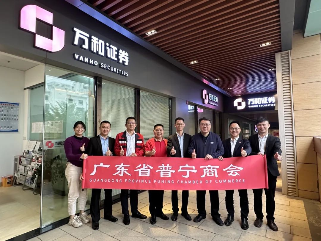 2024年1月17日,广东省普宁商会轮值副会长林大泉、副会长黄庆文、会员陈攀龙以及秘书处一行拜访会员单位万和证券(广州祈福新邨证券营业部)郑楚贤乡贤,受到了郑楚贤乡贤及团队的欢迎。