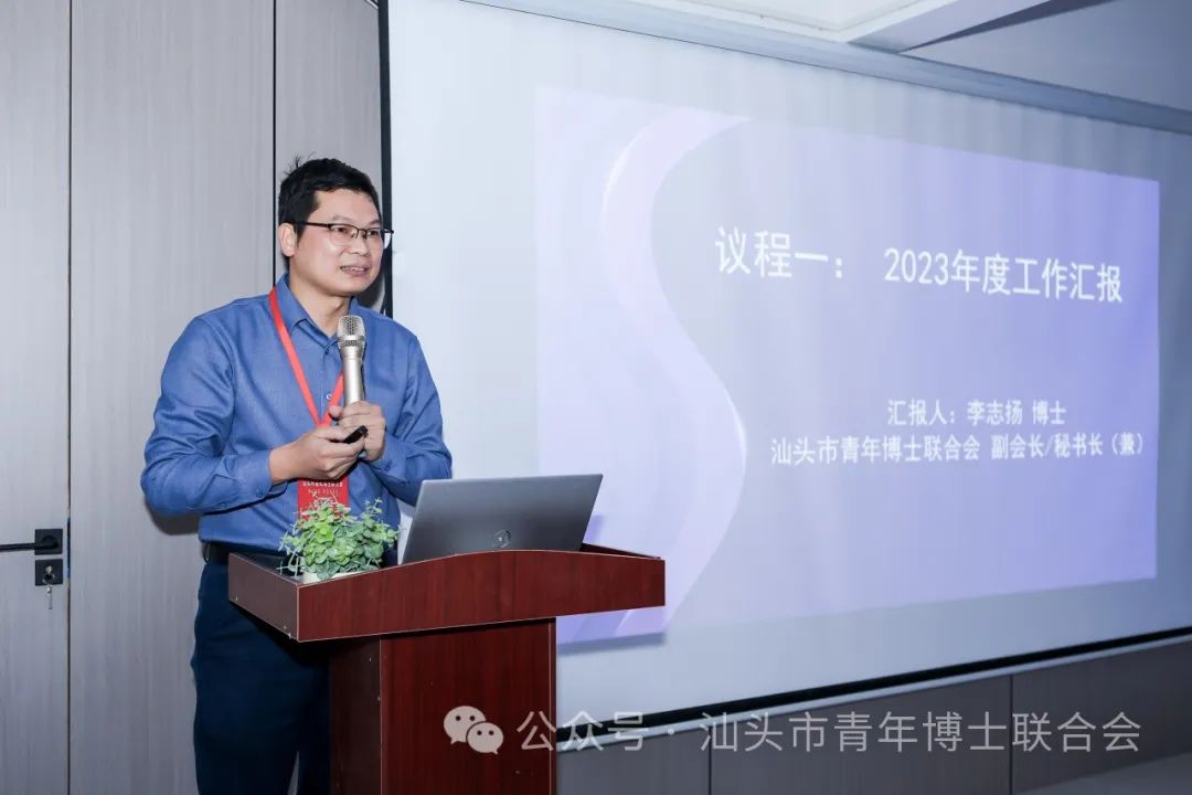 汕头市青年博士联合会副会长兼秘书长李志扬博士作2023年度工作报告。