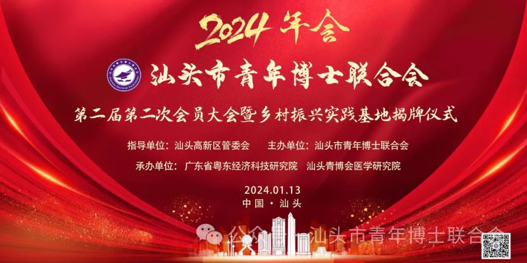2024年1月13日,由汕头高新区管委会指导、汕头市青年博士联合会主办、广东省粤东经济科技研究院和汕头青博会医学研究院承办的汕头市青年博士联合会第二届第二次会员大会暨乡村振兴实践基地揭牌仪式顺利举办。