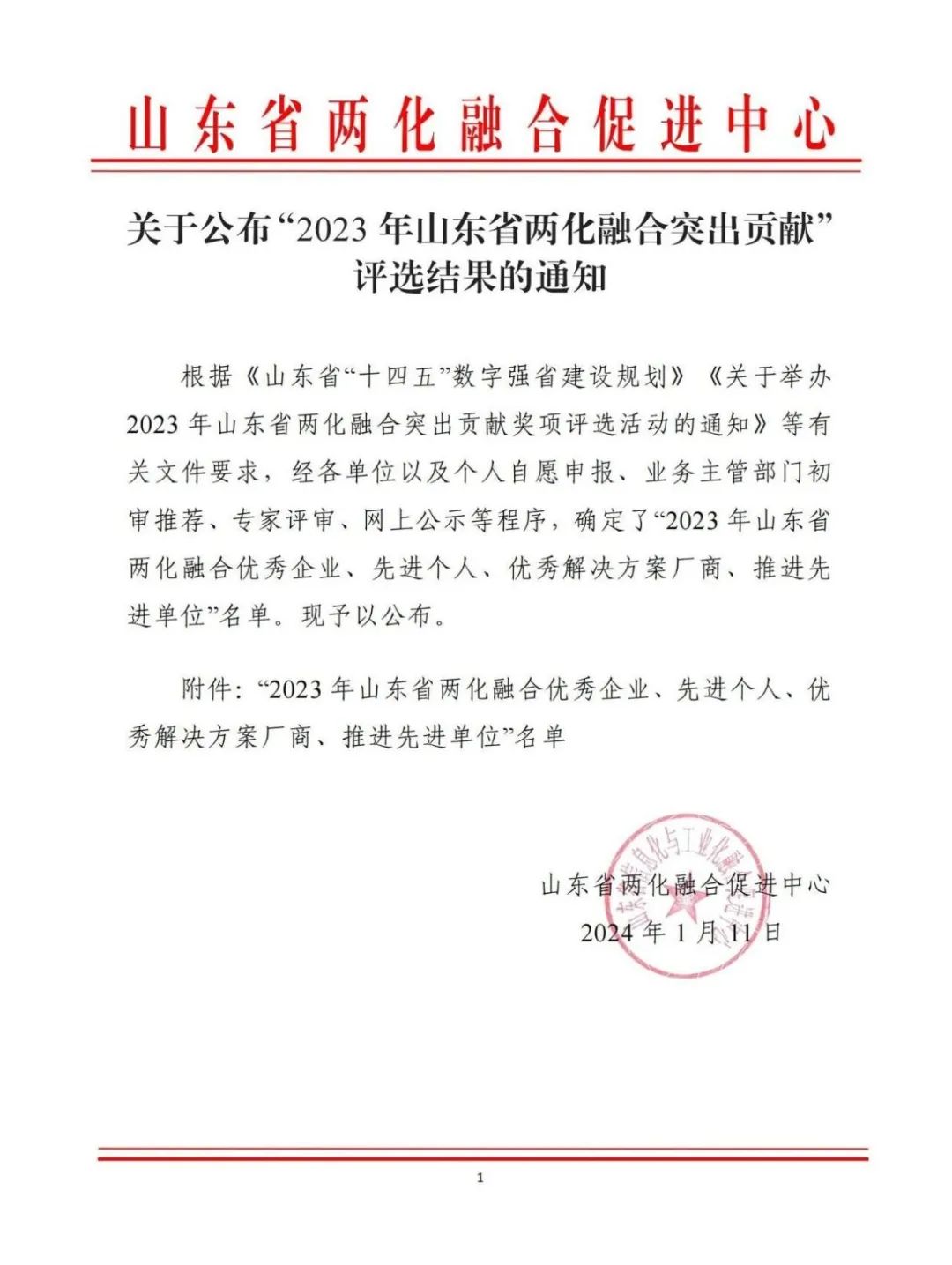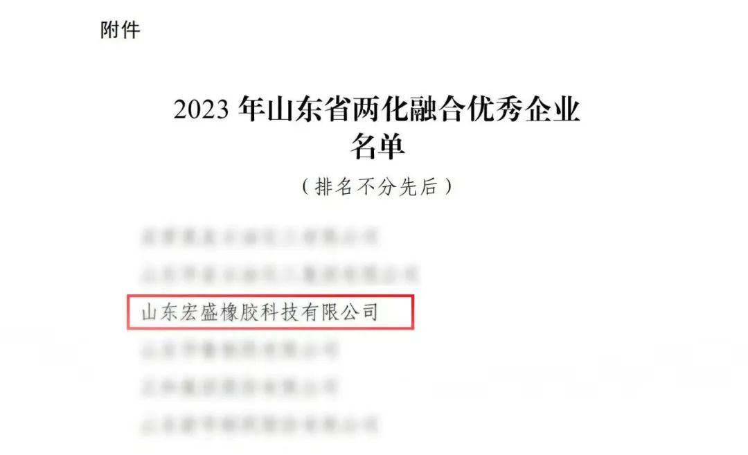 近日,根据《山东省“十四五”数字强省建设规划》、《关于举办2023年山东省两化融合突出贡献奖项评选活动的通知》等文件要求,经各单位以及业务主管部门初审推荐、专家评审等程序,山东宏盛橡胶科技公司荣获“2023年山东省两化融合优秀企业”荣誉称号。