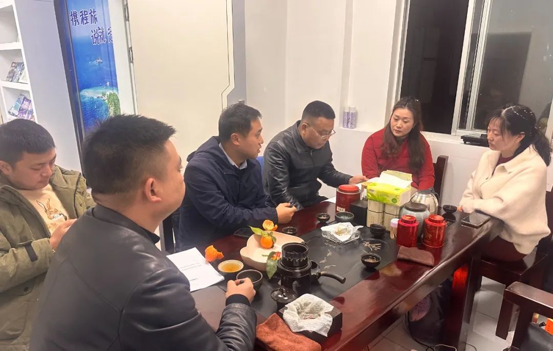 县文旅农投公司董事长赵建宇,县文旅农投公司副总经理、财务总监吴磊,到茶花泉旅行社营业部与原“不散的乡场”运营商洽谈合作后续事宜。