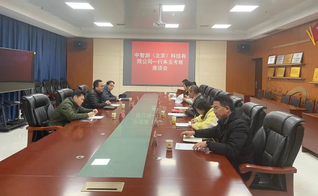 茶花泉公司副总经理向万蓉和资产经营部工作人员,在县文体广电局会议室参加中智游(北京)科技有限公司一行来玉考察座谈会。
