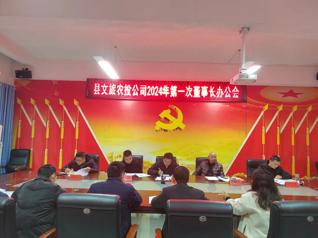 县文旅农投公司在会议室召开2024年第一次董事长办公会,会议由公司董事长赵建宇同志主持,纪委监委刘顺生应邀出席,会议共研究了七个事项。