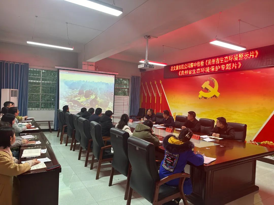 县文旅农投公司在会议室召开干部职工会议,会议由公司董事长赵建宇同志主持,全体干部职工参会,会议传达学习了习近平总书记近期重要讲话精神及中央、省、市、县会议精神,并集中收看《贵州省生态环境警示片》《贵州省生态环境保护专题片》。