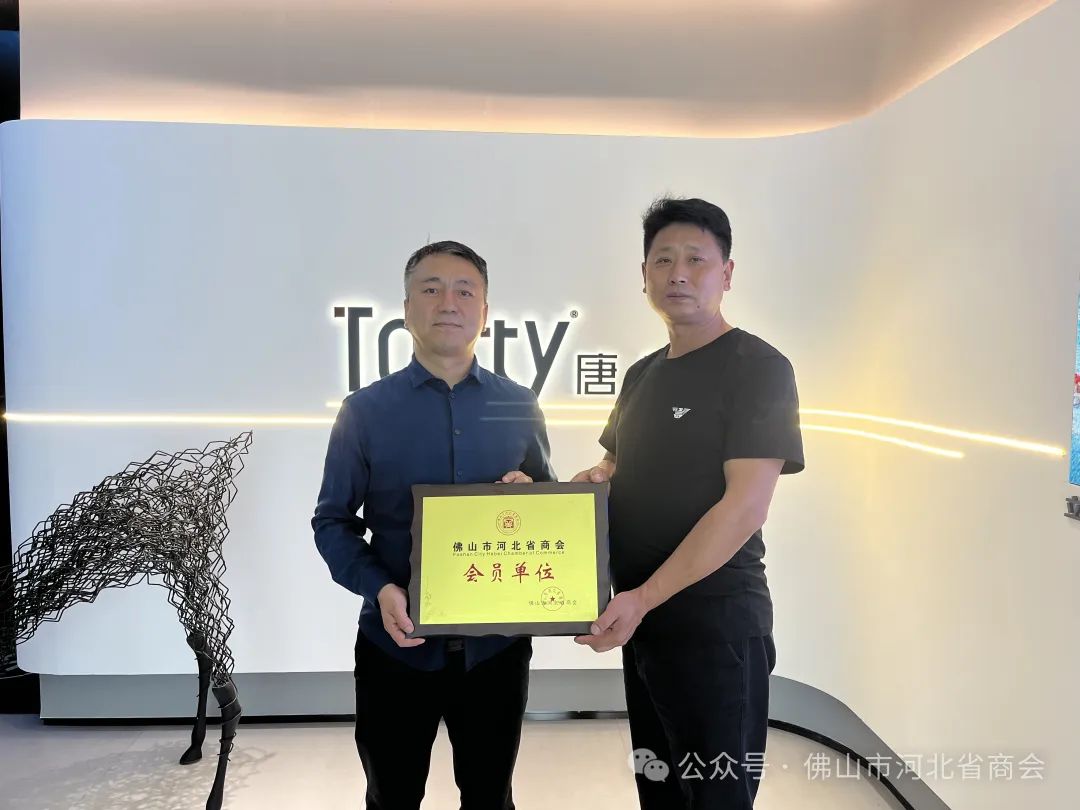 座谈会开始前,佛山市河北省商会监事长杨建民为立家卫浴张总颁发了会员单位牌匾。