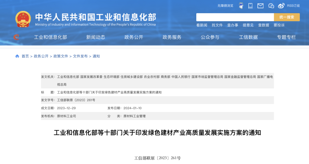 近日,工业和信息化部、国家发展改革委、住房城乡建设部等十部门印发绿色建材产业高质量发展实施方案(以下简称《方案》)。