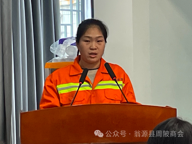 环卫工作者代表许敏会表示感谢商会和政府对我们一线环卫工人的关心和牵挂,环卫工人代表的是广大基层劳动者,为了家乡的建设和周陂的环卫事业更进一步的发展,无论是刮风下雨,还是严寒酷暑,她们始终坚守岗位,就是为了大家能有个干净整洁和宜居的环境。正是有了各级领导和周陂商会以及社会上对我们环卫工人的关心与关爱,我们更有干劲,今后将更加坚定信念,为了家乡小镇的洁净宜居再脏再累也将更加努力。