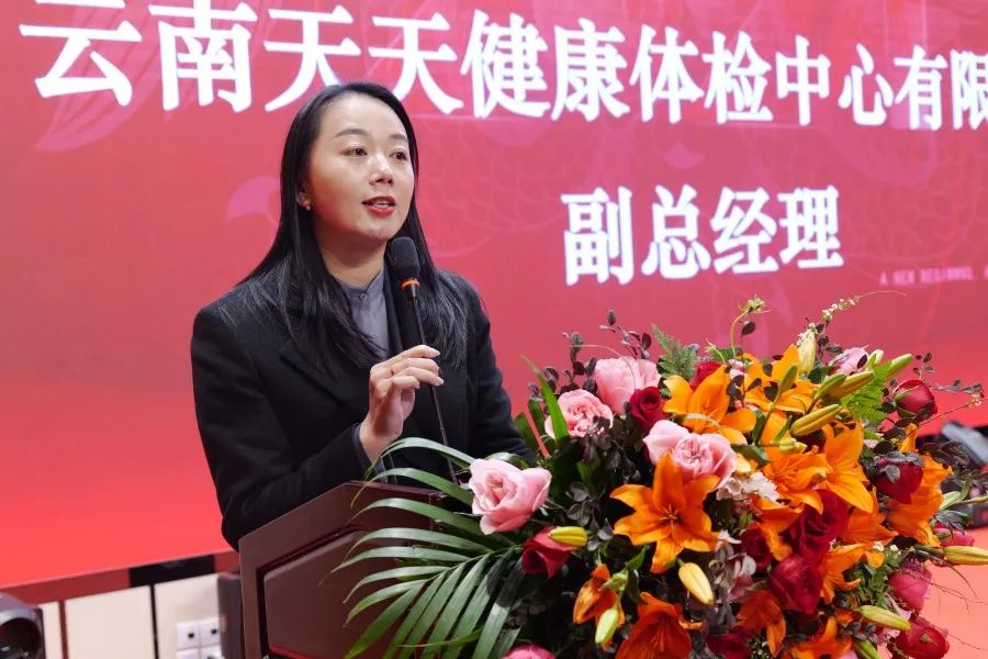 ▲副会长单位、天天健康体检龚玉副总经理作企业介绍