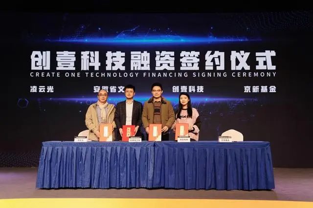作为本场活动的重要成果,现场举行了创壹科技与安徽省文投、凌云光(SH688400)、京新基金的融资签约仪式。