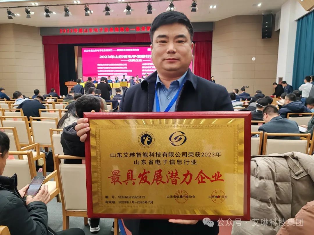 1月19日山东省信息产业协会第八届理事第三次会议暨山东电子学会第九届第三次理事会议在德州养老示范城召开,艾琳科技集团副总经理李程宝代表山东省信息产业协会常务理事单位山东艾琳智能科技有限公司参加会议并喜获2023年山东省电子信息行业优秀企业及最具发展潜力企业荣誉。