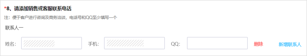添加销售或客服电话(必填)