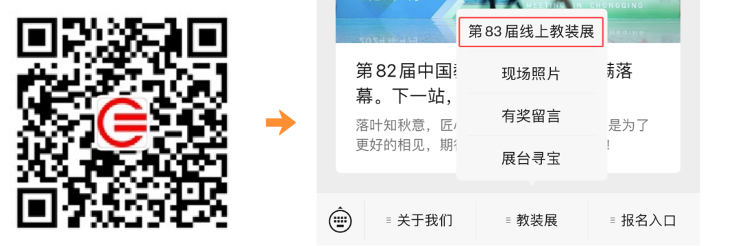 微信关注【教育装备网】,通过底下菜单栏即可打开【第83届线上教装展】。