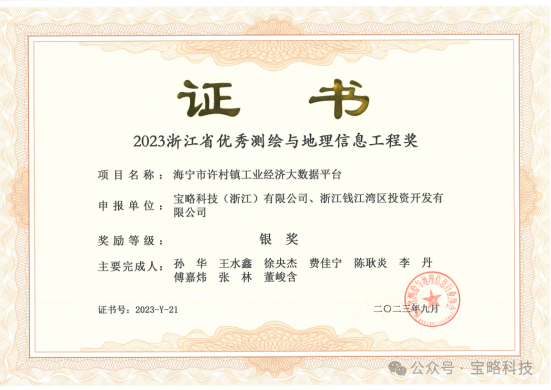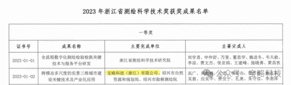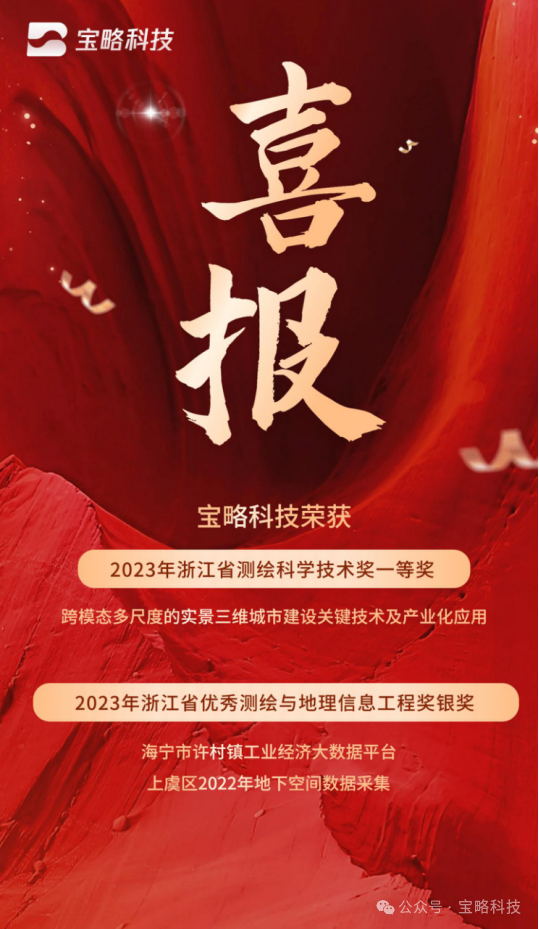 近日,浙江省测绘学会公布了2023年浙江省测绘科学技术奖的获奖名单。海邦沣华已投企业宝略科技(浙江)有限公司凭借“跨模态多尺度的实景三维城市建设关键技术及产业化应用”项目,荣获浙江省测绘科学技术奖一等奖。这一奖项由省测绘学会设立,并得到了省科技厅和自然资源厅的备案。这即是浙江省测绘行业科技成果的最高荣誉,也代表着省内测绘技术的顶尖水平。