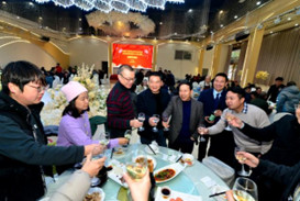 下午2点15分,迎新春联欢迎宴会结束,部分专家老总和群友一起合影留念,下午自由联谊交流、娱乐活动与企业参观,晚上餐宴后群友自由交流活动。