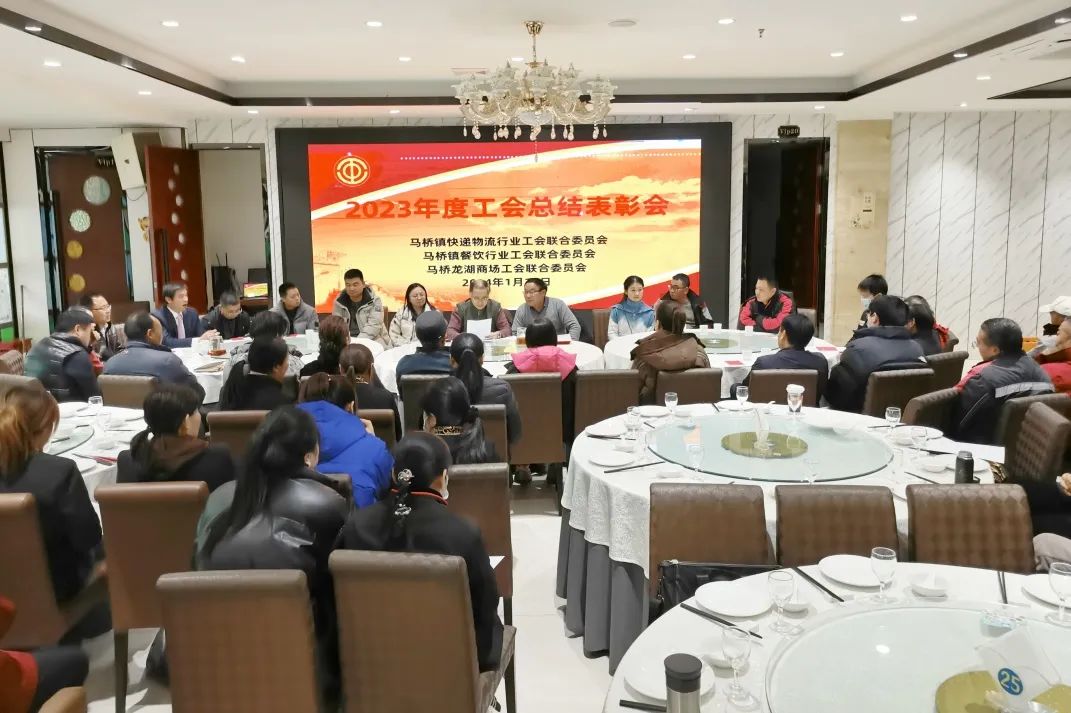 为切实加强对行业商圈工会职工的关心关爱,提升职工的幸福感、获得感和归属感。近日,马桥镇快递物流、餐饮行业、龙湖商业广场三家工会联合会举办年度总结暨表彰大会,来自全镇行业商圈“小二级”工会干部、工会积极分子及职工代表等近50人欢聚一堂,回顾总结去年的工作,表彰先进,展望未来。