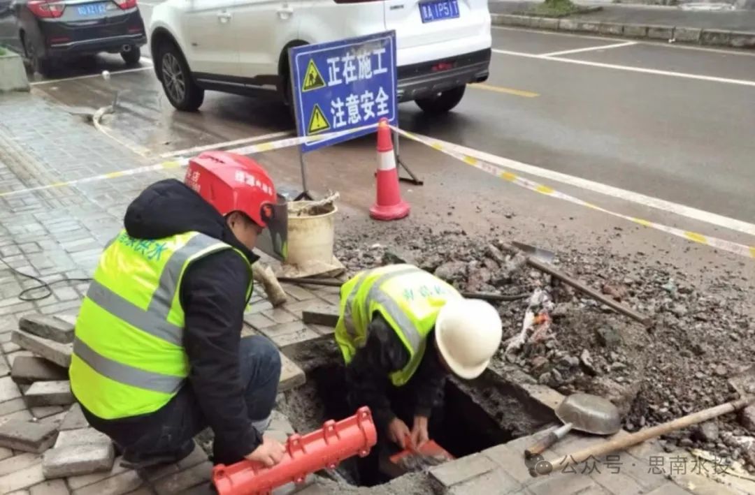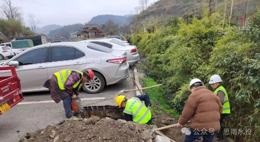 1月16日,县清泉公司长坝镇供水服务站开挖抢修石林景区供水总管。