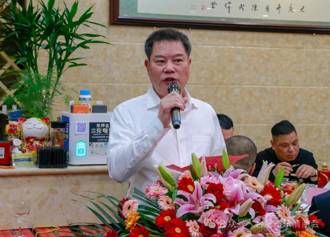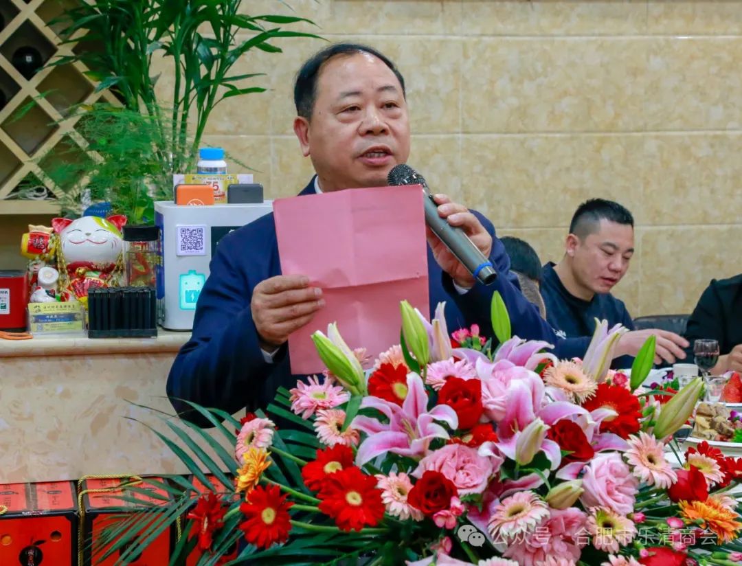 合肥市乐清商会会长倪亦成代表商会致辞,他对相关部门领导多年来对商会的大力支持表示衷心感谢,对商会倾注大量心血的黄方权名誉会长、郑晓明名誉会长表示最深的敬意,你们的付出,如同一座坚实的山峰,为我们提供了稳固的依靠,你们的智慧与远见,使商会在波涛汹涌的市场中保持航向,稳步向前;同时我要感谢商会中的每一位成员,你们的无私奉献是商会力量的源泉,在这一年中,我们携手并进,共同努力与付出,让乐清商会的名字在业界闪耀着璀璨的光芒;新的一年已经来临,我们站在新的起点上,展望未来,让我们团结一心,以更加坚定的步伐,向着共同的目标迈进,我们要继续秉承商会的精神,不断拓展商会的影响力,提升会员企业的竞争力;让我们以感恩的心,铭记过去一年中每一个为商会付出的身影,让我们以进取的心,迎接新的一年中所有的机遇与挑战,让我们团结一心,共同书写合肥市乐清商会更加辉煌的未来,最后倪亦成会长祝各位领导、各位来宾、各位老乡新春快乐,身体健康,阖家幸福,龙年大吉!