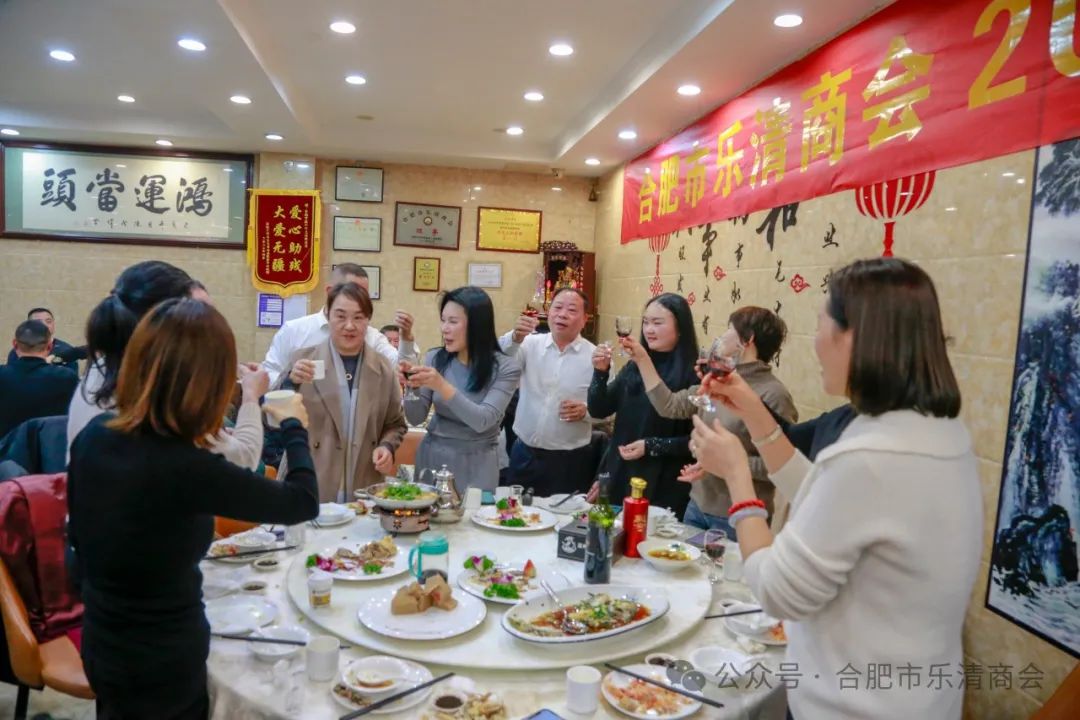 商会常务副会长兼秘书长蔡少安代表商会致祝酒词,他对各位领导、各位来宾、各位老乡的到来表示热烈的欢迎和衷心的感谢,由于三年的疫情,我们聚少离多,但也因这天灾的洗礼,更增强了我们相互的牵挂,我们一切安好,大家风采依旧,我相信在倪亦成会长的带领下,合肥市乐清商会会越办越好,更上一层楼,请各位同仁放心,合肥市乐清商会这一平台,必将为广大在肥乐商提供施展才华、共谋发展的广阔空间,今晚我们相聚意义无比,愿我们难忘今宵,留下美好又珍贵的记忆,现在我提议,为了我们祖国的繁荣富强,为了我们共同的商会事业,为了我们大家的健康幸福,干杯!