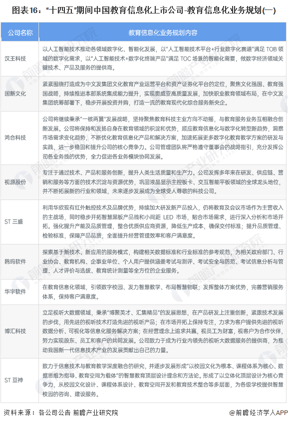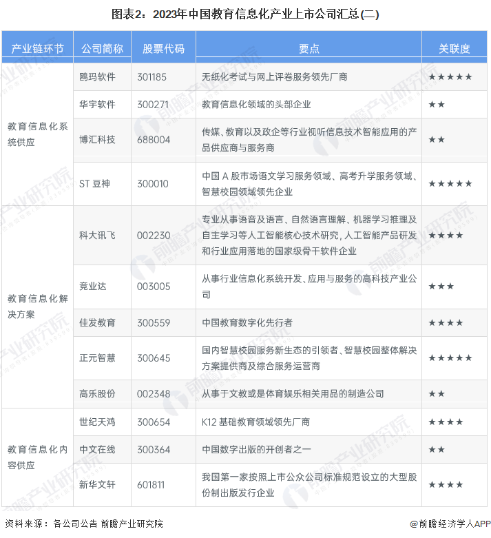 行业主要上市公司:科大讯飞(002230.SZ);鸥玛软件(301185.SZ);正元智慧(300645.SZ);国新文化(600636.SH)等。