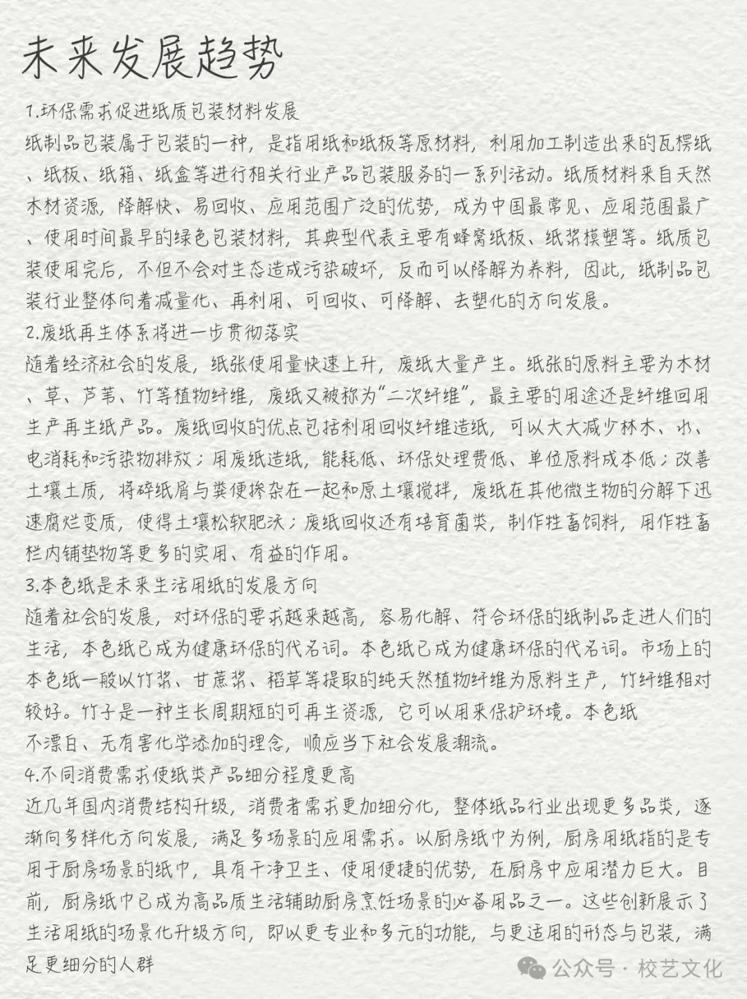 4.市场细分:随着消费者需求的多样化,纸行业市场将进一步细分。企业需要精准把握市场需求,研发差异化产品,满足消费者个性化需求。