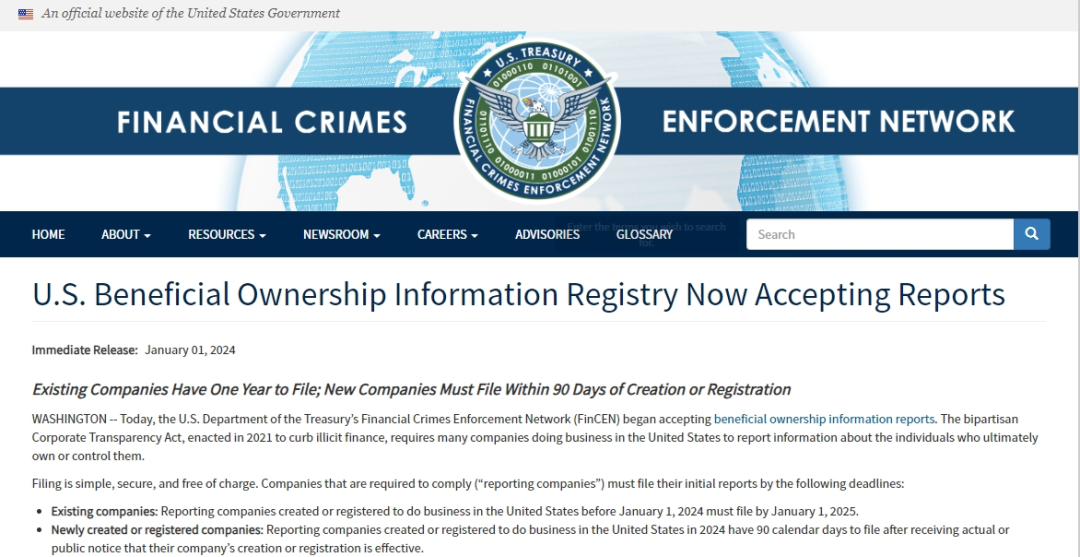 根据 2021 Corporate Transparency Act规定,自2024年1月1日起,所有符合要求的公司需要向美国财政部金融犯罪执法网络FinCEN申报相关的所有者和高层管理人员的具体信息,同时在信息有变动时及时更新。