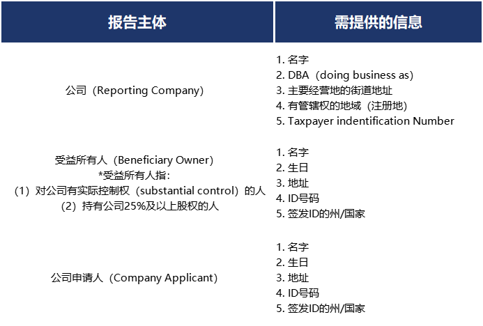 BOI主要申报beneficial owner的信息。