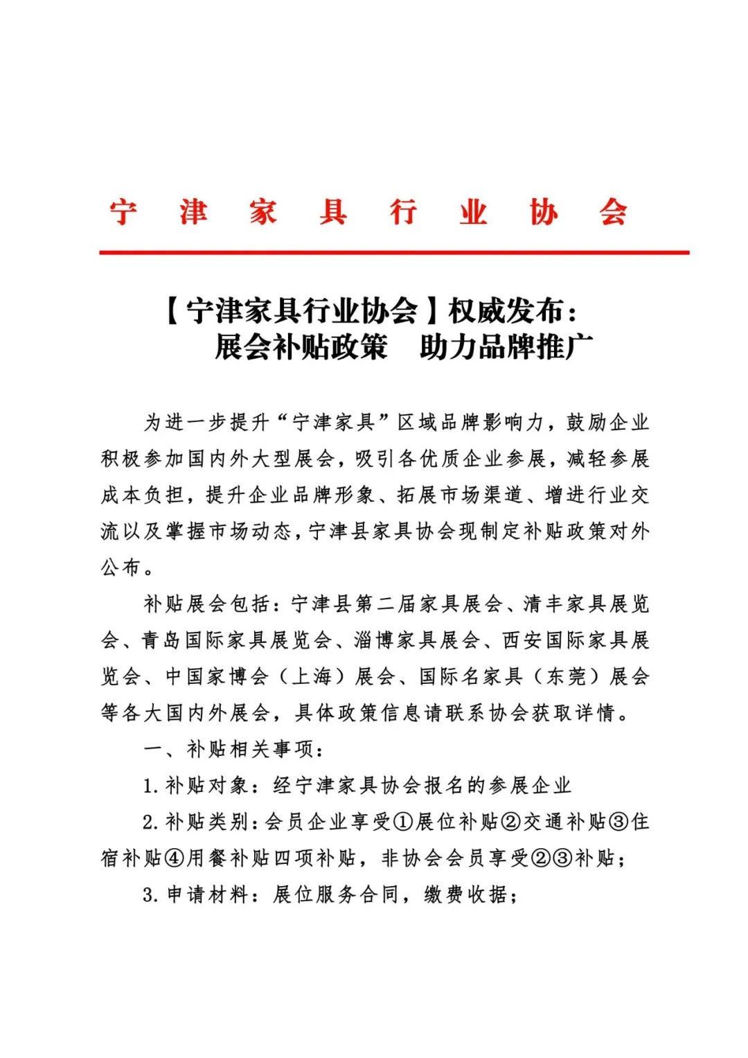 【宁津家具行业协会】权威发布:展会补贴政策 助力品牌推广