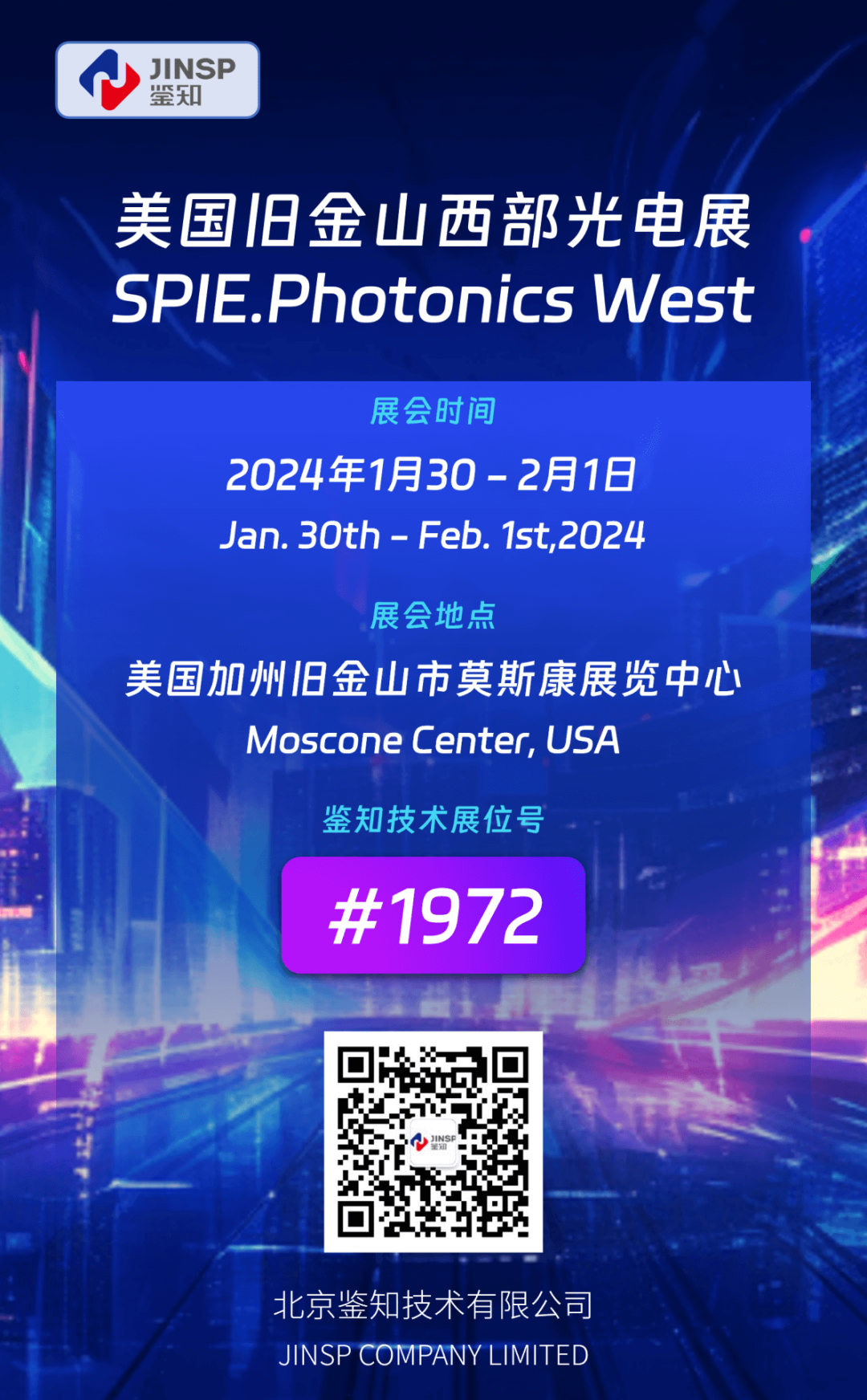 2024美国西部光电展览会(SPIE. Photonics West)将于1月30日-2月1日在美国旧金山莫斯康展览中心举办。
