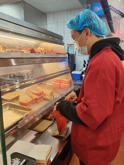 寒假期间我来到了塔斯汀中国汉堡店工作。我的工作是每天上下班打卡签到、包汉堡、擀汉堡胚,前台售卖、收拾桌子、打扫卫生,刚开始工作时的我十分紧张,但随着不断地练习,我从一开始的毛手毛脚,到后来的烂熟于心, 我逐渐放平心态。我一步一步去了解餐厅的基本工作流程,在与每位顾客的交流中,锻炼我的的交际能力和工作能力,全力以赴地去满足顾客的需求。