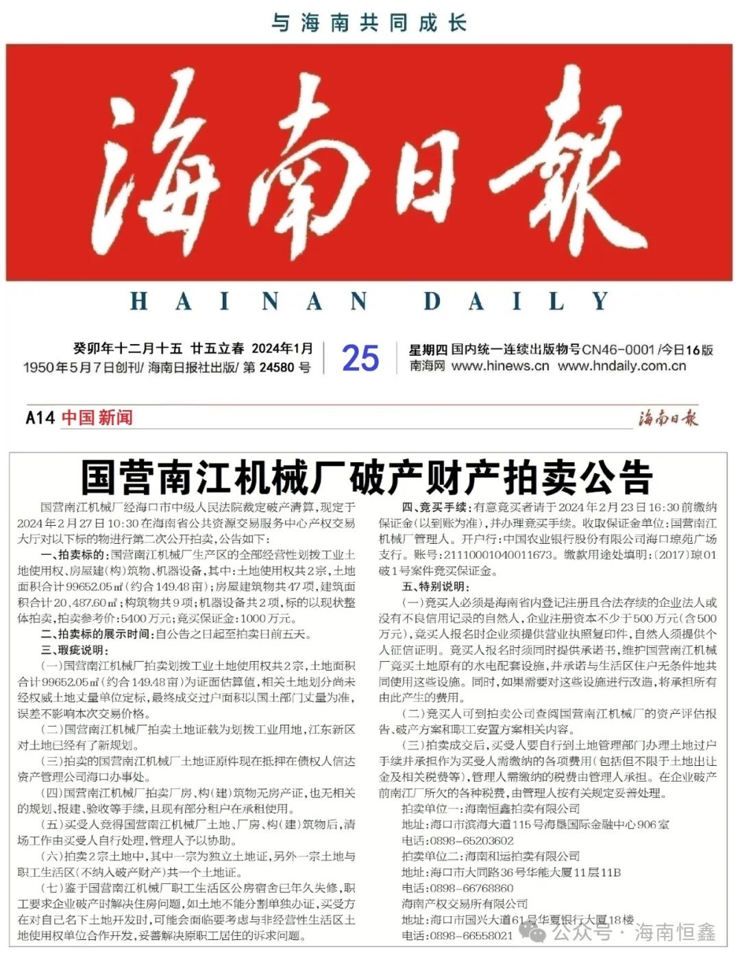 海南恒鑫拍卖有限公司 联 系 电 话:0898-652036302 |