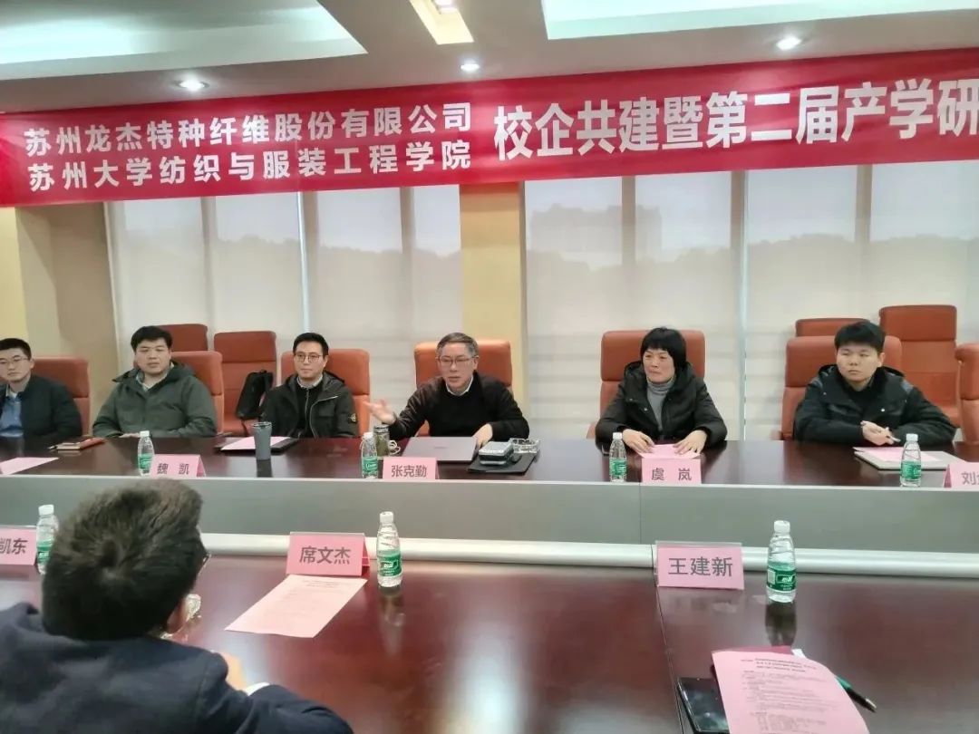 为进一步深化校企合作,拓宽毕业生就业渠道,2024年1月19日,纺织与服装工程学院院长张克勤带队赴苏州龙杰特种纤维股份有限公司,开展校企共建暨第二届产学研研讨活动。本次活动以“绿色-负碳-可持续发展”为主题,围绕绿色可持续功能材料的理论、技术、应用、产品创新、发展趋势等热点话题进行深入探讨与交流。同时探讨相关的人才培养模式和校企合作意向。