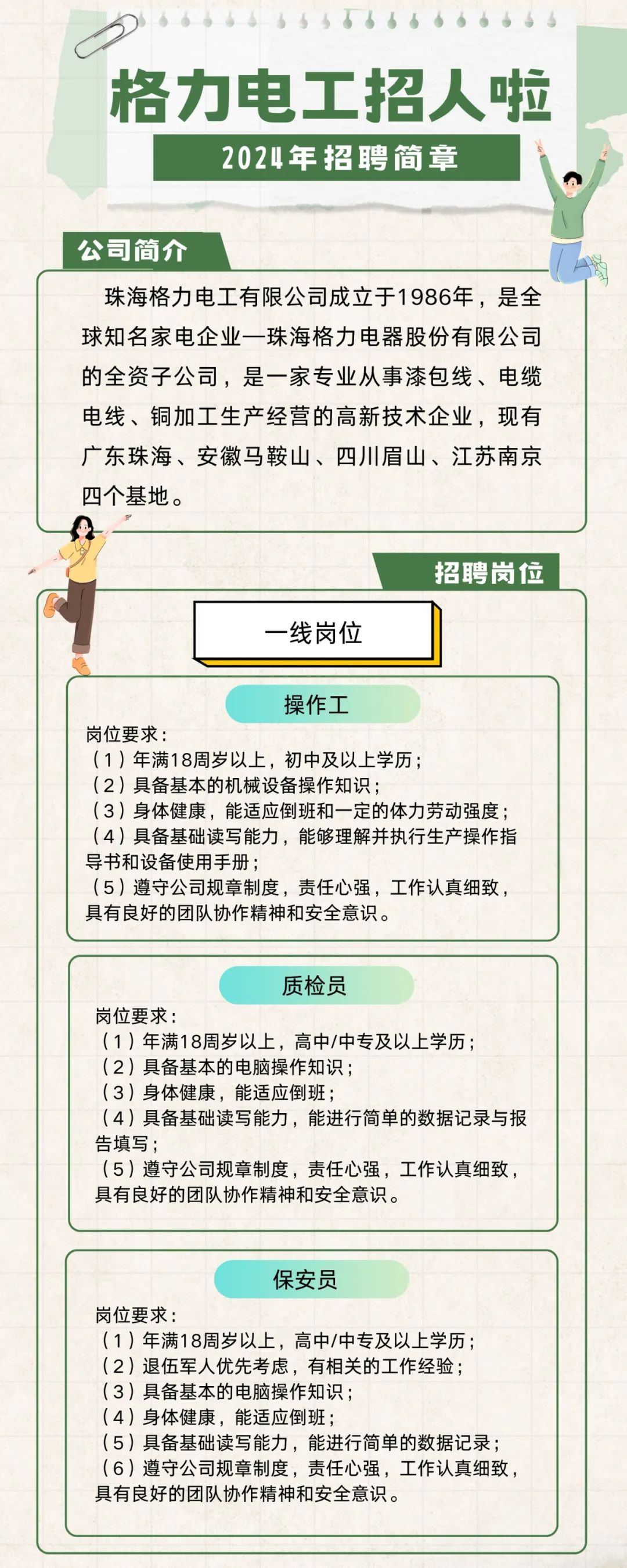 格力电工2024年招聘简章