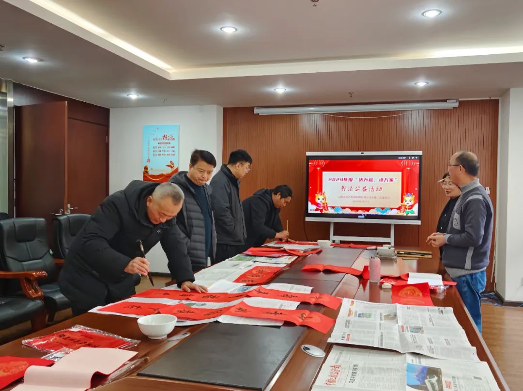 新春佳节将至,为营造欢乐喜庆、祥和文明、团结和谐的节日氛围,按照全总、省总和省国防科工会安排部署,2024年1月25日,云南省戎合投资控股有限公司本部工会在三楼会议室开展2024年春节送万福、万福进万家书法公益活动,活动邀请到孔祥贵、武旸、李博3位书法名师为本部职工家庭写春联、送福字。