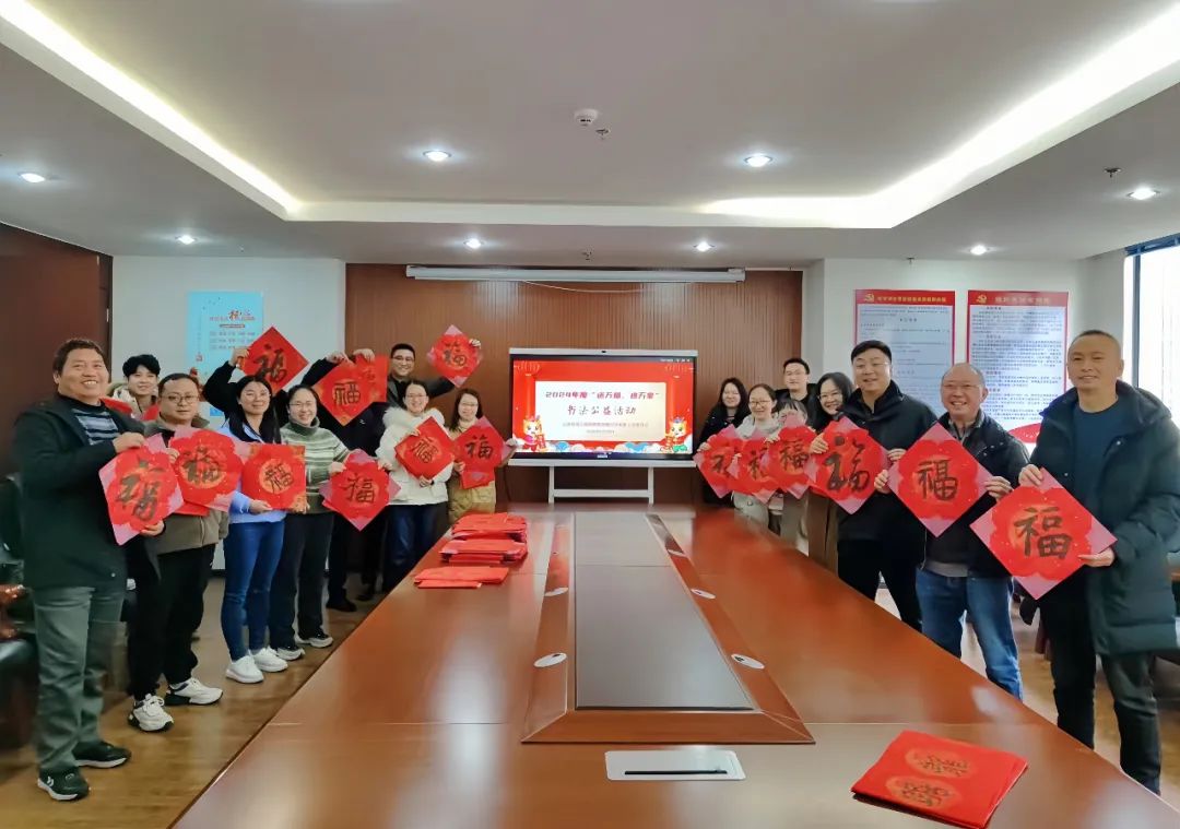 活动最后,本部全体职工领取新春祝福,并和书法名师合影留恋。职工们手捧着寓意福气满满的“福”字,快乐写在脸上,幸福荡漾在心间。