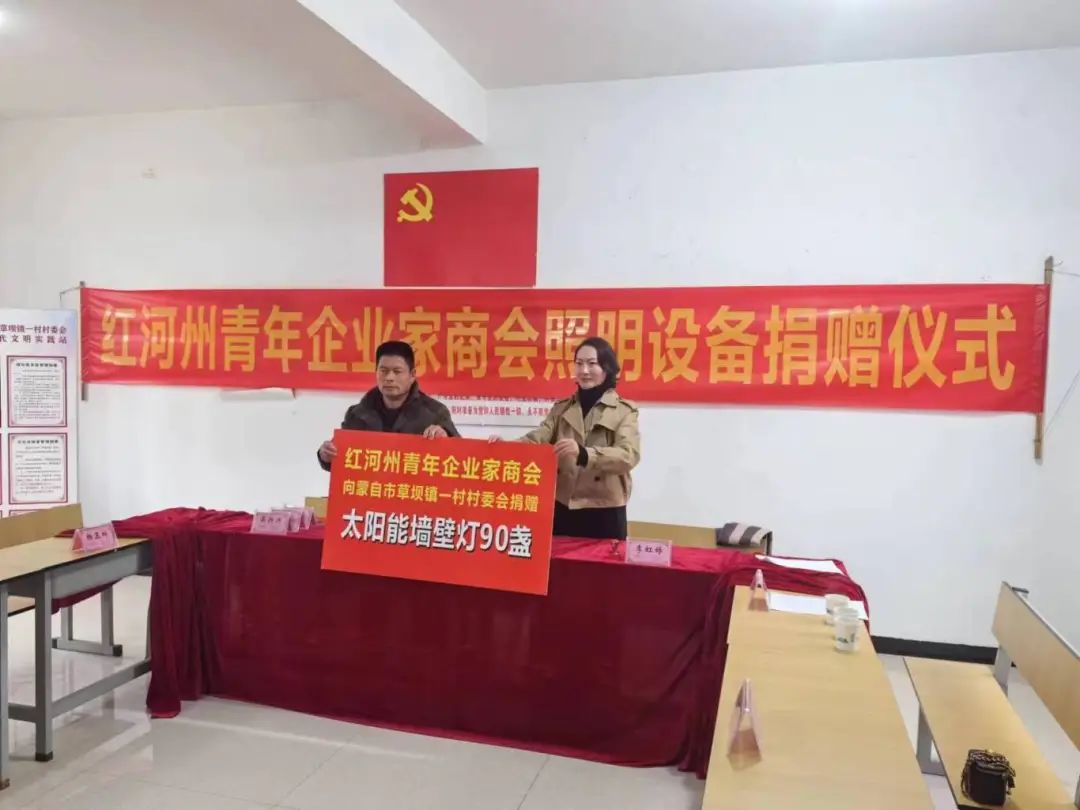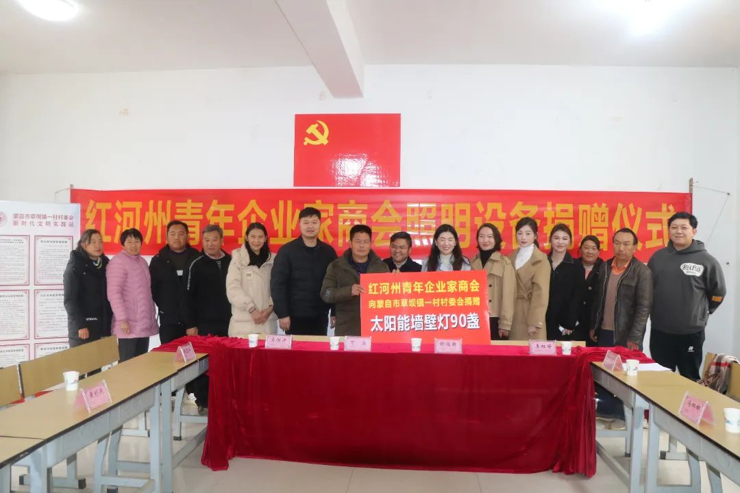 1月25日下午,为助力草坝经济发展,解决蒙自市草坝镇一村照明问题,进一步改善村民夜间出行环境,红河州青年企业家商会在蒙自市草坝镇一村村委会活动室进行了照明设备捐赠签约仪式。