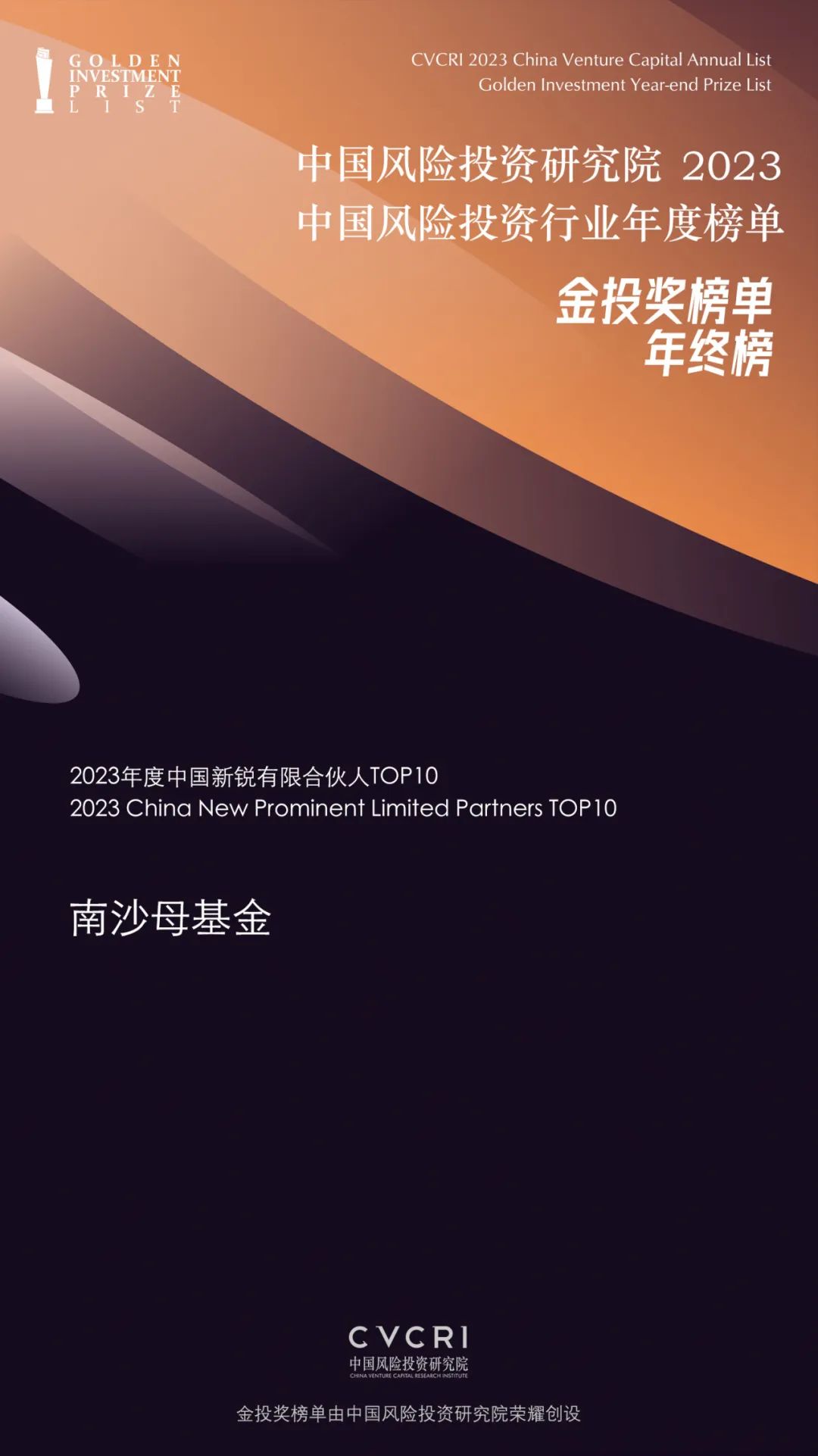 金投奖榜单是国内风险投资行业最具影响力的榜单之一,由中国风险投资研究院评定发布,旨在表彰对风险投资行业做出卓越贡献、对行业具有重大影响甚至改变行业格局的投资机构和投资人。
