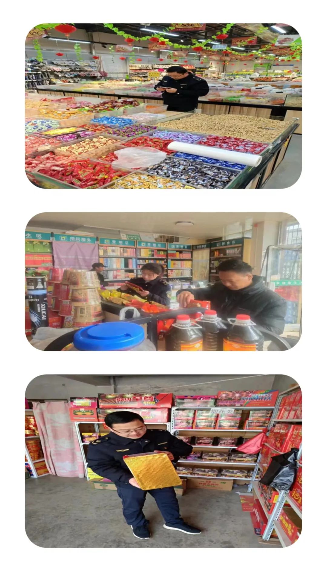 春节临近,为强化节日食品,烟花爆竹安全保障,积极营造健康,放心的节日消费环境。近期,邵寨市场监督管理所对辖区内超市、集贸市场、烟花爆竹店开展为期三天的专项安全检查。